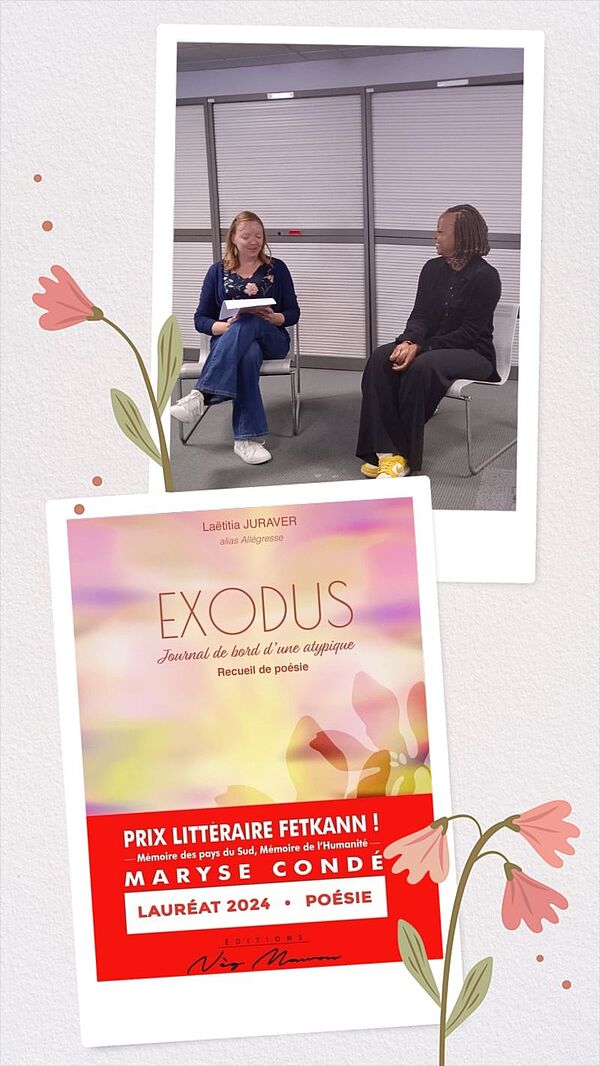 Lors de cette rencontre, Laëtitia Juraver a partagé son parcours, depuis sa participation à des concours d’écriture pendant le Covid jusqu'à la sortie de son recueil de poésies. Elle a également évoqué la consécration de son travail avec le prix Littéraire Fetkann ! Maryse Condé, qui récompense le travail et le devoir de mémoire.